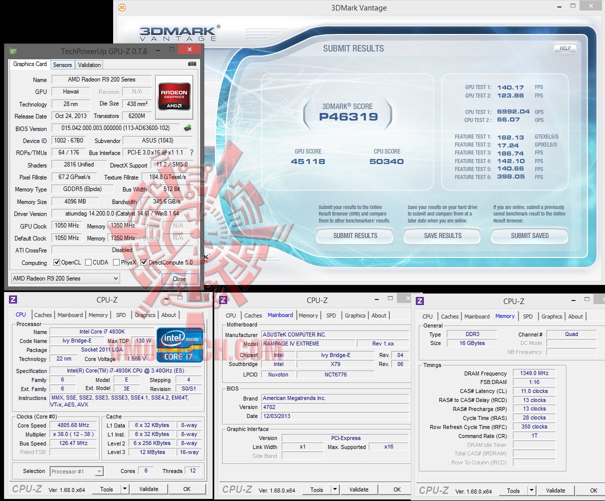 ASUS Radeon R9 290X MATRIX Platinum @ 1050/1350 MHz Core/Mem