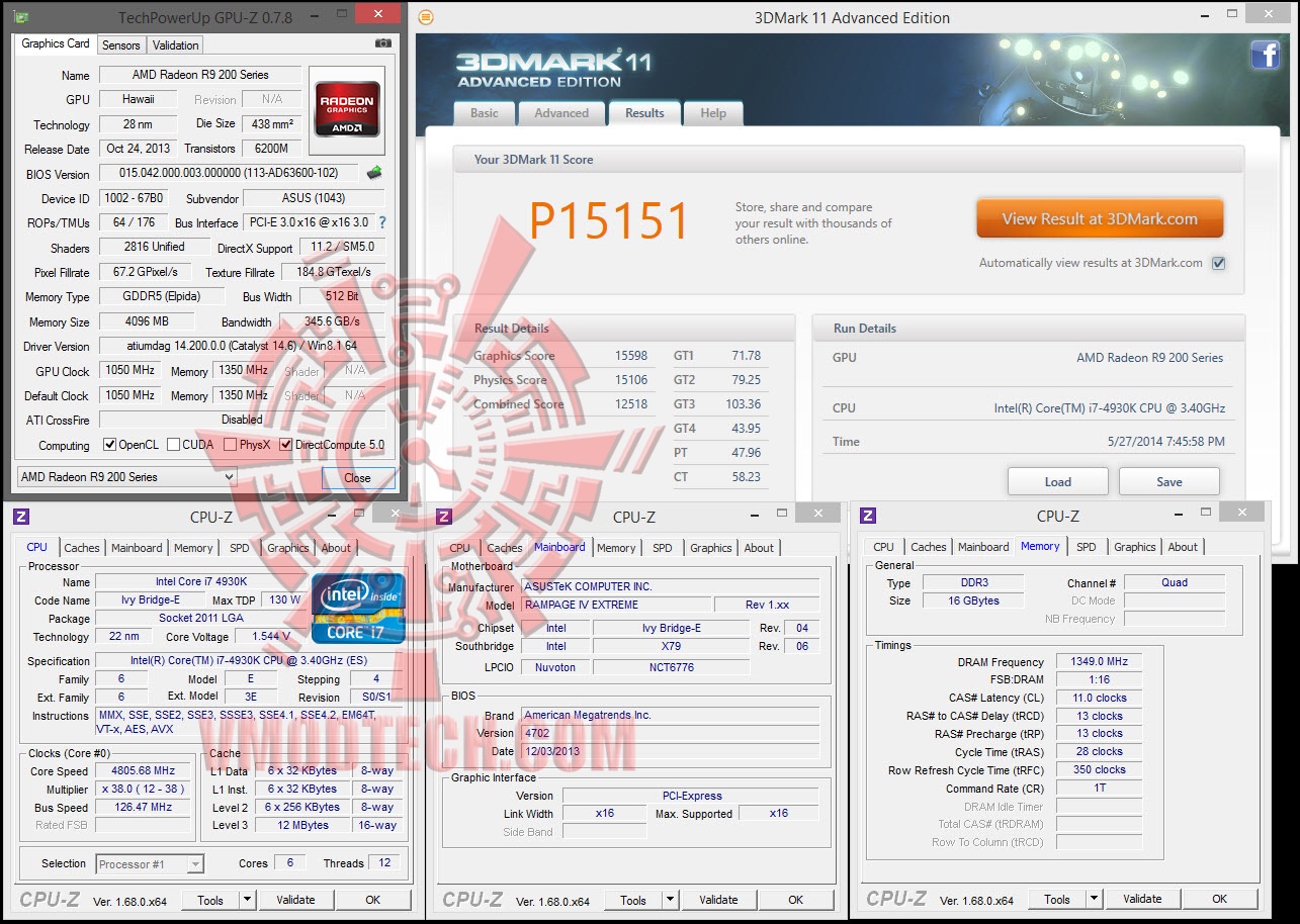 .ASUS Radeon R9 290X MATRIX Platinum @ 1050/1350 MHz Core/Mem
