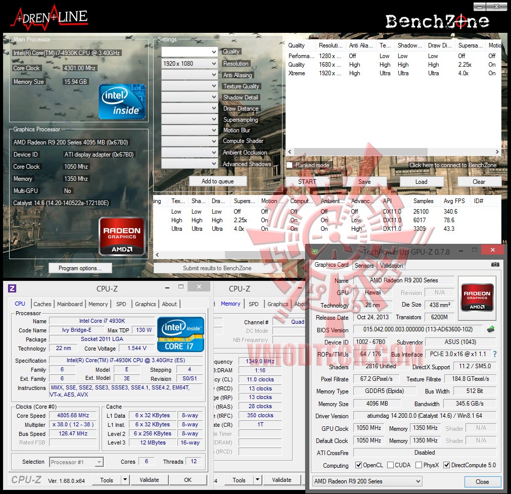 ASUS Radeon R9 290X MATRIX Platinum @ 1050/1350 MHz Core/Mem