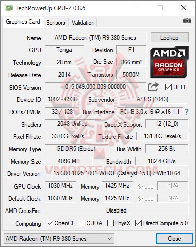 ASUS RADEON R9 380X Strix Gaming OVERCLOCK from GPUZ