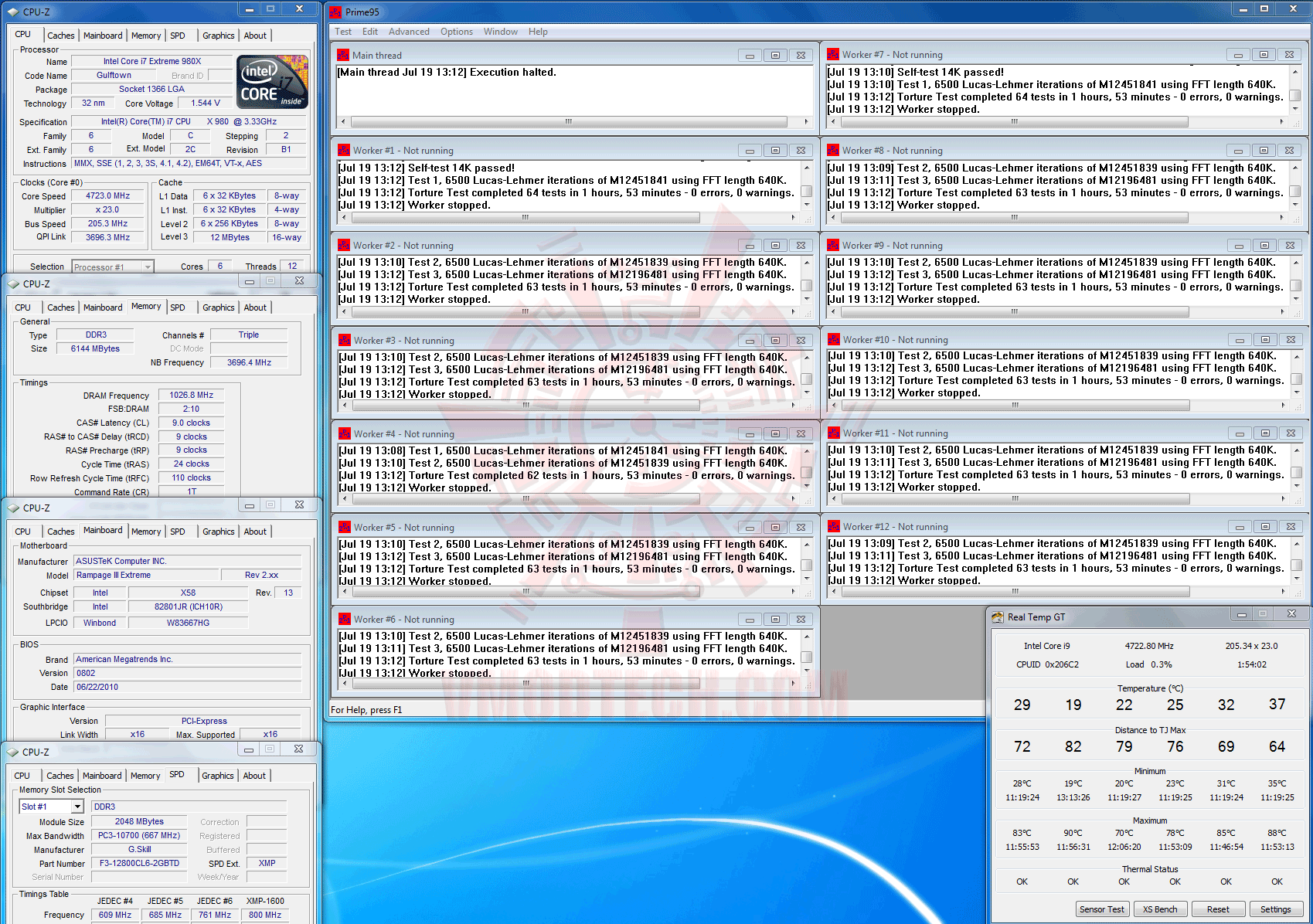 …แล้วก็ไปลุยทดสอบที่ความเร็ว 4,723MHz QPI 3,696MHz BClk 205MHz UncoreClk 3,696MHz DDR3-2053 9-9-9-24-1T กันดูเลยครับว่าอะไรจะผ่านบ้าง