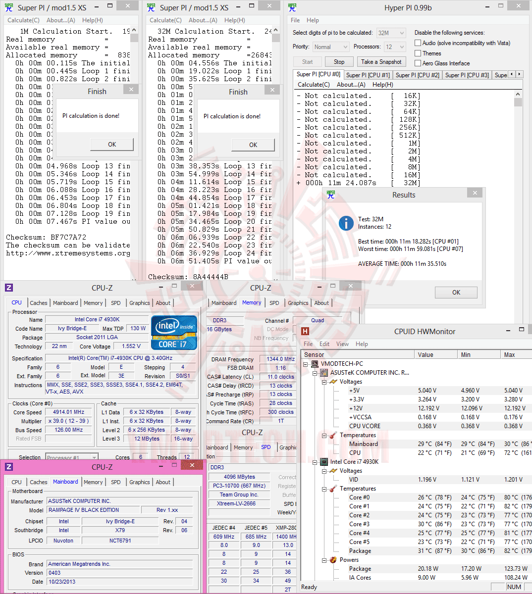 SuperPI 1M 1 Thread, 32M 1 Thread & 32M 12 Threads