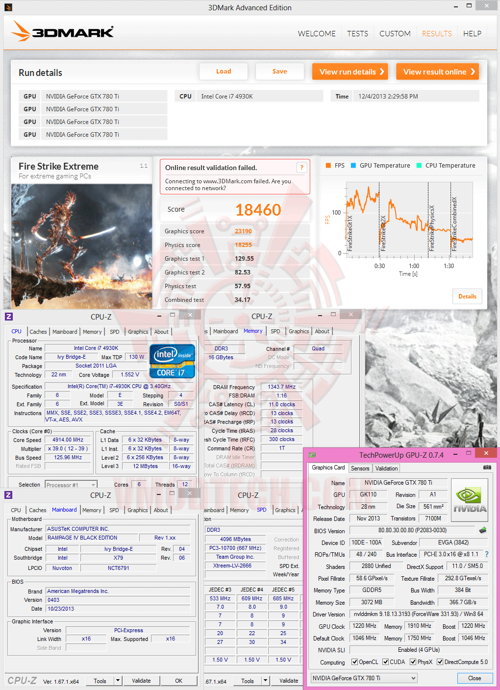 NVIDIA GeForce GTX 780 Ti 3GB GDDR5 4 Way SLI @ 1,220/7,640 MHz