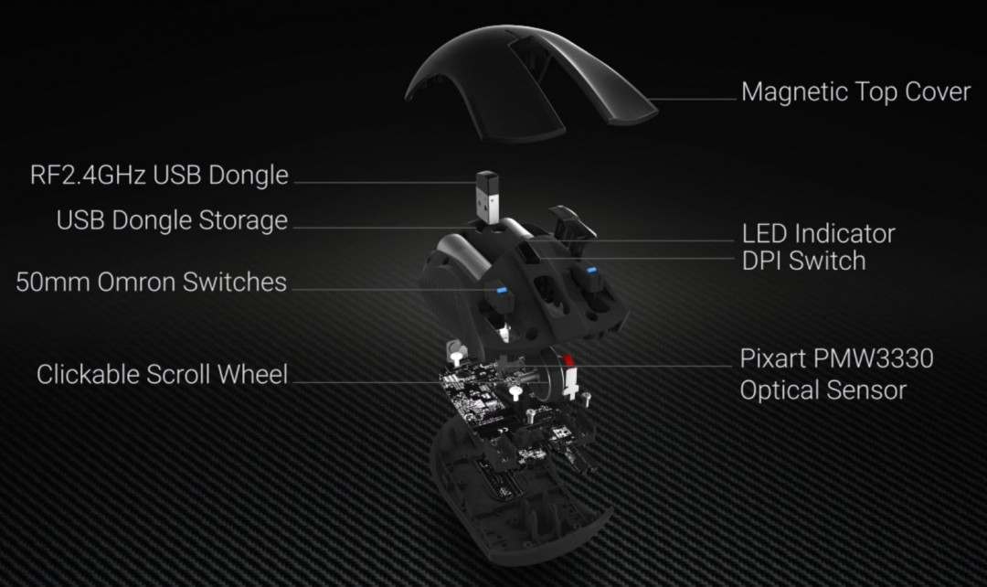 รายละเอียดของภายในตัวเมาส์จากหน้าเว็บไซด์ของ ASUS เอง