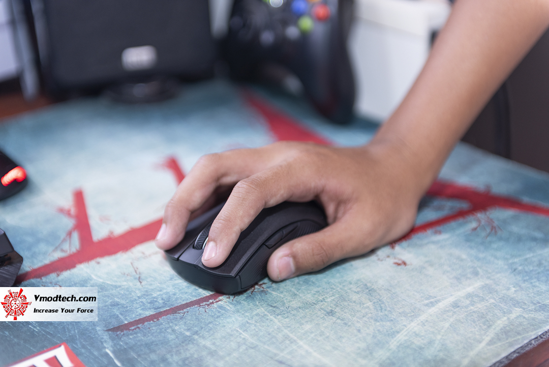 สำหรับ ROG STRIX Carry สำหรับผมนั้น สิ่งแรกที่รู้สึกคือมันเชื่อมต่อได้สะดวกครับ คือถ้าจะเชื่อมต่อตรงๆกับ Notebook ก็ทำได้ หรือจะใช้ USB receiver ที่มากับตัวเมาส์เพื่อเชื่อมต่อก็ได้เหมือนกัน แค่เสียบ USB แล้วก็เ่ลื่อนสวิทซ์ด้านใต้ตัวเมาส์เท่านั้น สบายมาก ตัวเมาส์นั้นมีขนาดเล็กครับแต่ฟีลลิ่งการจับถือนั้นใกล้เคียงกับเกมส์มิ่งเมาส์รุ่นใหญ่ของ ASUS เองมาก น้ำหนักตัวเมื่อใส่ถ่านแล้วจะรู้สึกหนักเหมือนกันครับแต่ก็ใช้เวลาปรับตัวไม่นานก็สามารถใช้งานได้อย่างสะดวกสบายครับ สำหรับเรื่องเคอร์เซอร์นั้นก็คม เคลื่อนที่ได้ตามใจสั่งครับไม่มีปัญหา เรียกว่าสามารถใช้งานได้ไม่ต่างจากเกมส์มิ่งเมาส์ขนาดปกติเลย ถือเป็นตัวเลือกที่น่าสนใจครับสำหรับผู้ที่รักการเล่นเกมส์และต้องการเกมส์มิ่งเมาส์หน้าตาเกมส์มิ่งพกพาไปไหนมาไหนกับคุณด้วย ROG STRIX Carry ถือเป็นตัวเลือกที่ต้องหามาใช้เลยครับ