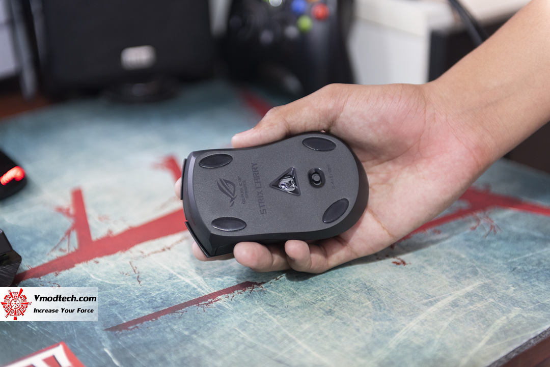 สวัสดีครับ พบกับบทความจากหน้าเว็บไซด์ Vmodtech กันอีกครั้งนึง เรายังมี Gaming Keyboard จากค่าย ASUS รุ่นใหม่มารีวิวให้ได้ชมกันต่อกันอีกรุ่นนึงครับ ROG STRIX Carry นั้นเป็นเกมส์มิ่งเมาส์ขนาดเล็กที่เหมาะมากสำหรับพกพาไปนอกสถานที่ ตัวเมาส์นั้นเชื่อมต่อกับคอมพิวเตอร์ผ่านทางคลื่น Bluetooth ย่าน 2.4 GHz ด้านพลังงานนั้นสามารถเลือกใช้ถ่านแบบ AA จำนวนสองก้อน และทีเด็ดอีกอย่างคือตัวเมาส์นั้นสามารถเปลี่ยนสวิทซ์ได้อย่างง่ายดายครับ ตัวเซนเซอร์นั้นเลือกใช้ PMW3330 ที่เป็นแบบ Optical มีความละเอียดที่ 7200 DPI โดยรวมแล้วน่าสนใจครับ เรามาชมรายละเอียดของมันกันเลย