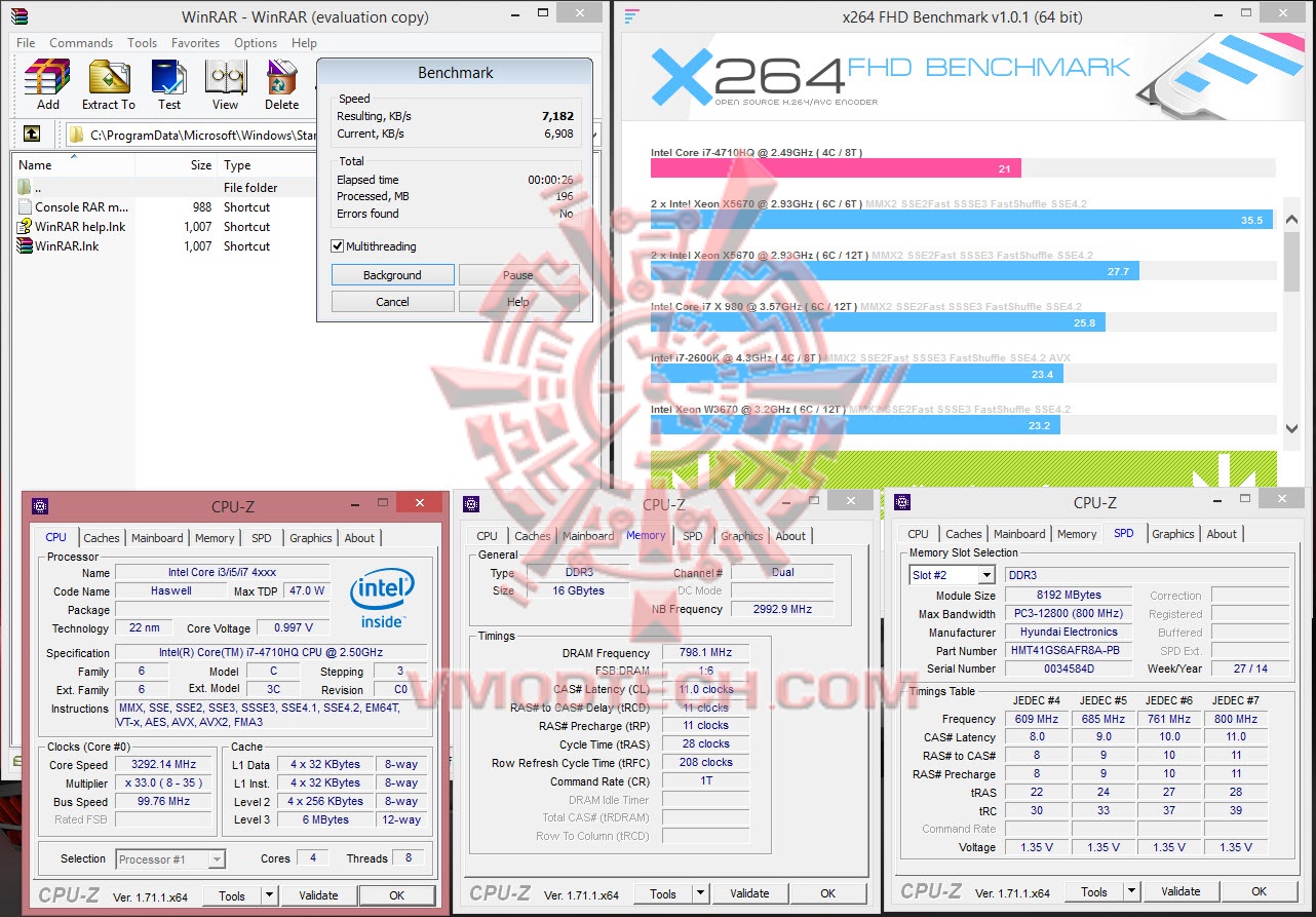 สำหรับคะแนน WinRAR นั้นอยู่ที่ประมาณเจ็ดพันกว่าๆ และ X264 นั้นได้เฟรมเรทที่ 21 แบบนี้ถือว่าใช้งานเหลือเฟือสำหรับการทำงานทั่วๆไปและดีพอสำหรับเป็นขุมพลังในกมส์มิ่งโน๊ตบุ๊คนี้