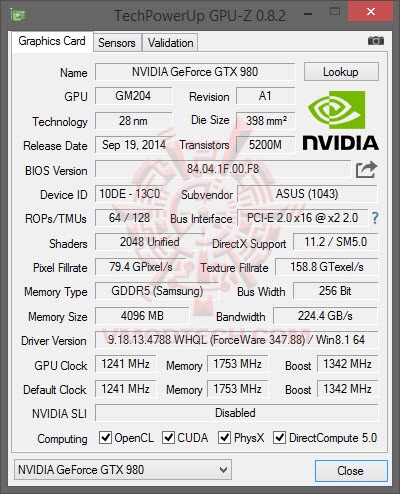 ASUS ROG GeForce GTX 980 Matrix Platinum from GPUZ