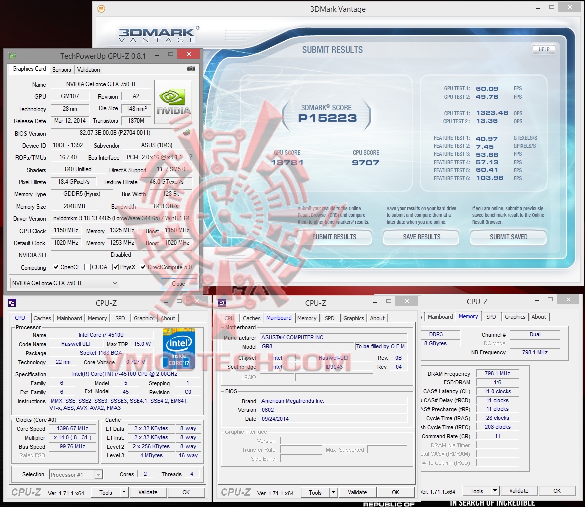 ด้วย GPU ที่ติดตั้งมาบน ASUS ROG GR8 อย่าง GTX 750 Ti นั้นทำผลงานดีพอควรครับบนการทดสอบ Vantage ที่ประมาณหมื่นกลางๆ
