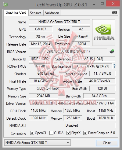 GPU ที่ติดตั้งมาเป็น NVIDIA GeForce GTX 750 Ti ที่มีแรมติดตั้งมาให้ 2 กิ๊กกะไบท์
