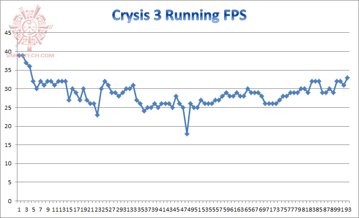 Crysis 3 เกมส์เก่าแต่ยังคงความต้องการทรัพยากรที่สูง และเมื่อปรับตาม config ด้านบนจะเล่นได้เฉลี่ยที่ประมาณ 30 เฟรมต่อวินาที
