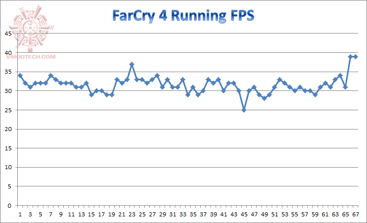 เกมส์ใหม่อย่าง Farcry 4 สวยงามและเล่นได้อย่างลื่นไหลพอควรที่ 32 เฟรมต่อวินาทีในฉากที่ไม่ซับซ้อนตะลุมบอนกัน หากปรับความละเอียดในเกมส์ให้ต่ำลงจะช่วยให้เล่นได้อย่างลื่นไหลตลอดทุกฉาก