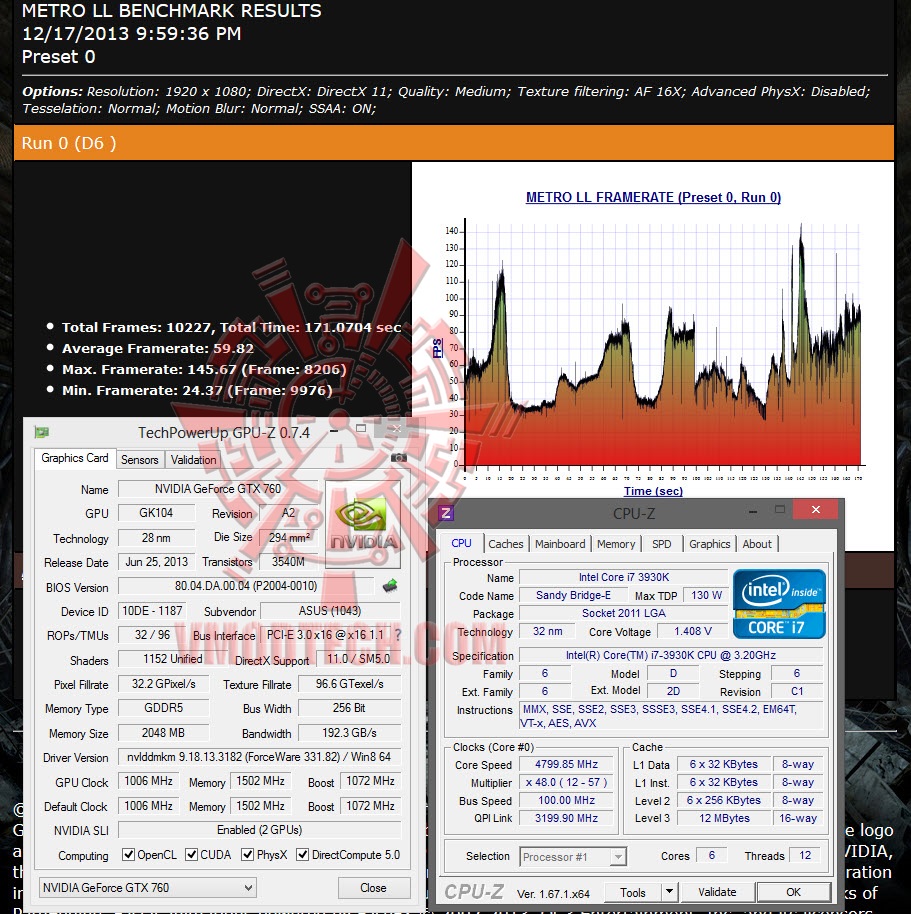 ASUS ROG MARS GeForce GTX 760 Default @ 1006/1502/1072 MHz Core/Mem/Boost
