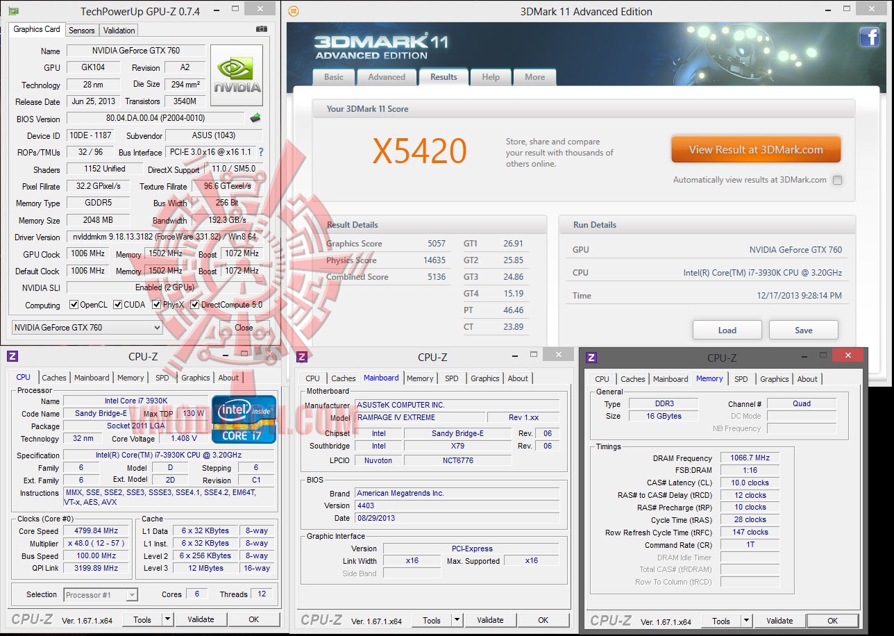 ASUS ROG MARS GeForce GTX 760 Default @ 1006/1502/1072 MHz Core/Mem/Boost