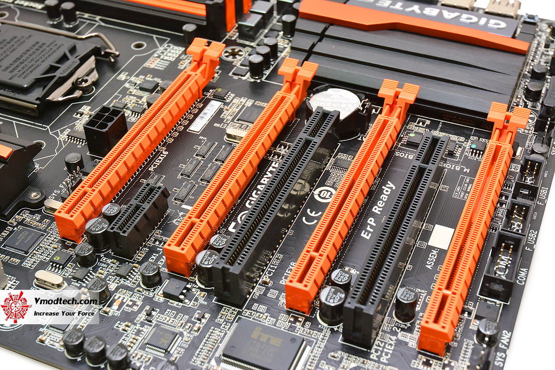 …PCI-E 3.0/2.0 X16 Slot ที่มาพร้อมกัน 2 ช่องทาง ที่สนับสนุนการทำงานทั้งในรูปแบบ SLI และ CrossFireX ตามด้วย PCI-E 2.0 X4 Slot อีก 1 ช่องทางครับ