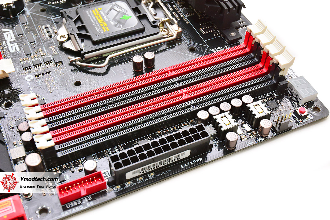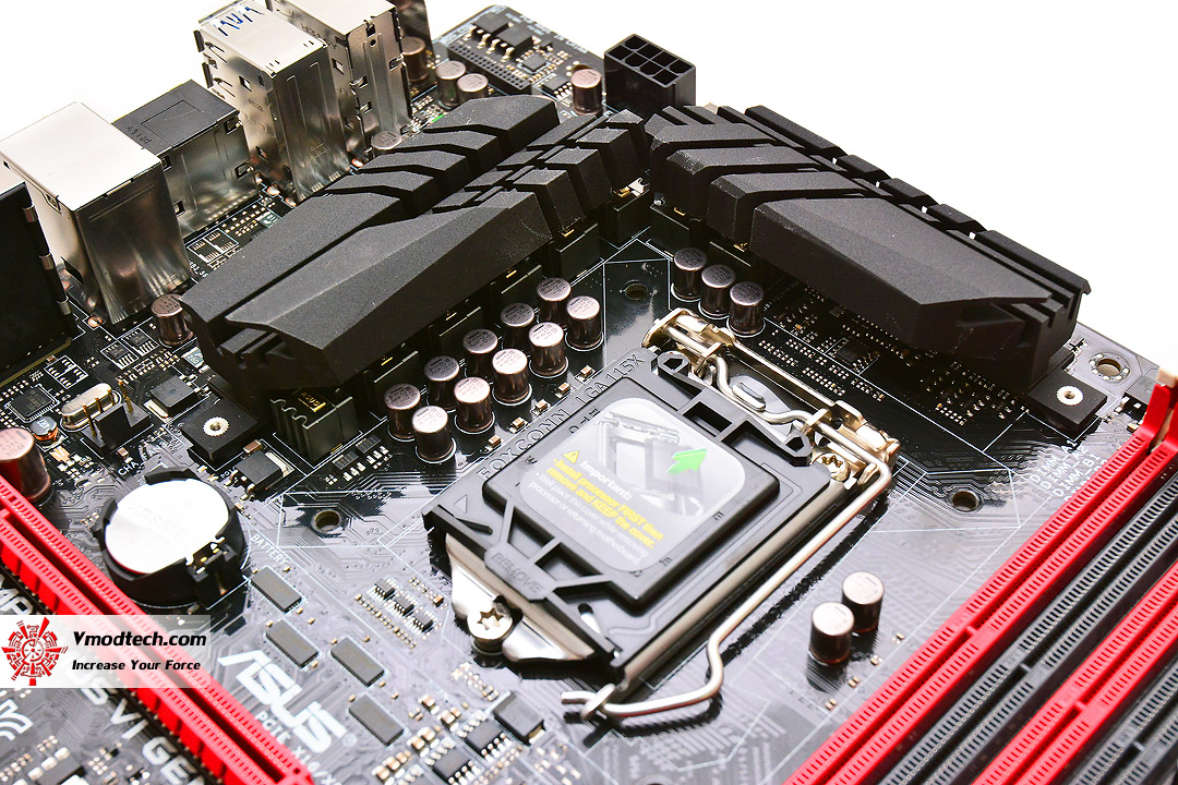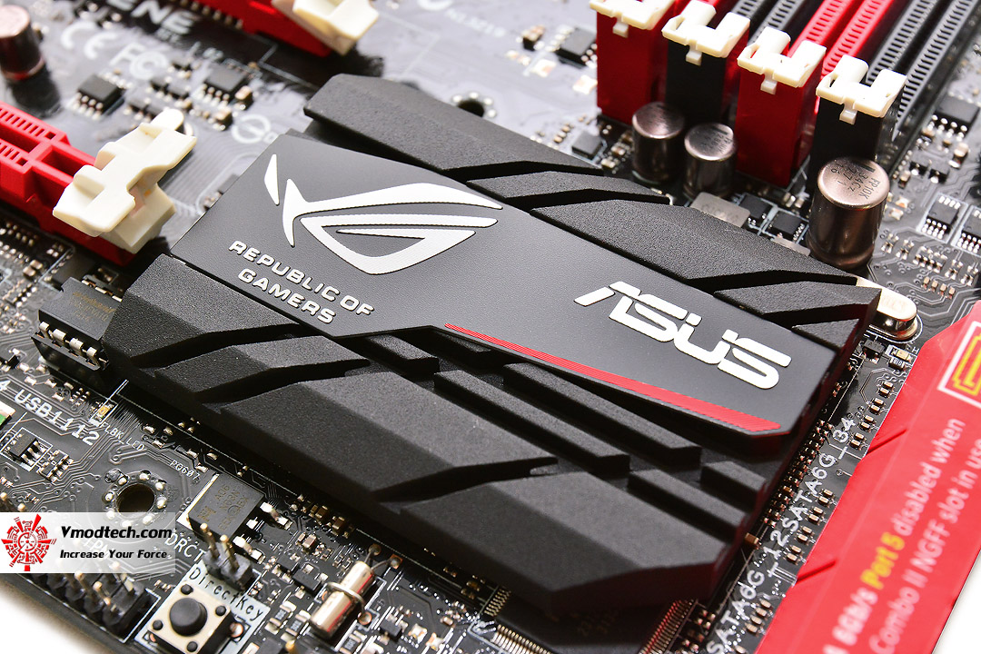 หน้าตาของมาเธอร์บอร์ดรุ่นนี้ จะออกแนวเข้มขรึมดำคาดแดงดุดัน ตามคอนเซปต์ของบอร์ดในตระกูล ROG ครับ