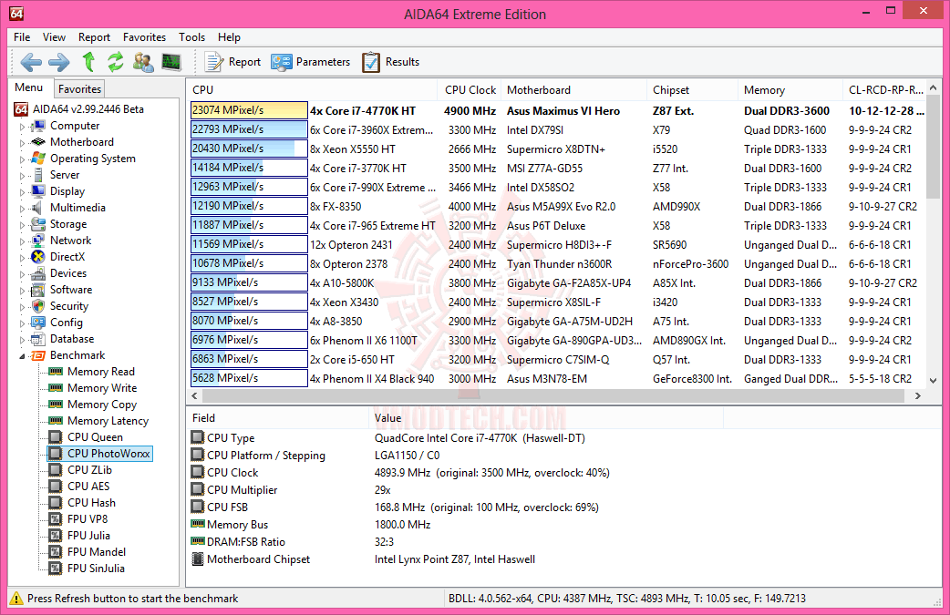 4th Generation Intel® Core™ i7-4770K @ 4,900 MHz Bclk 100 MHz DDR2800 10-12-12-28-1T