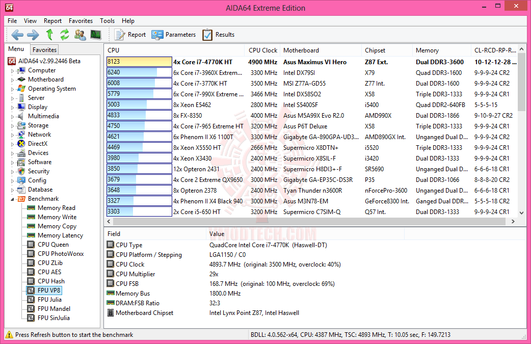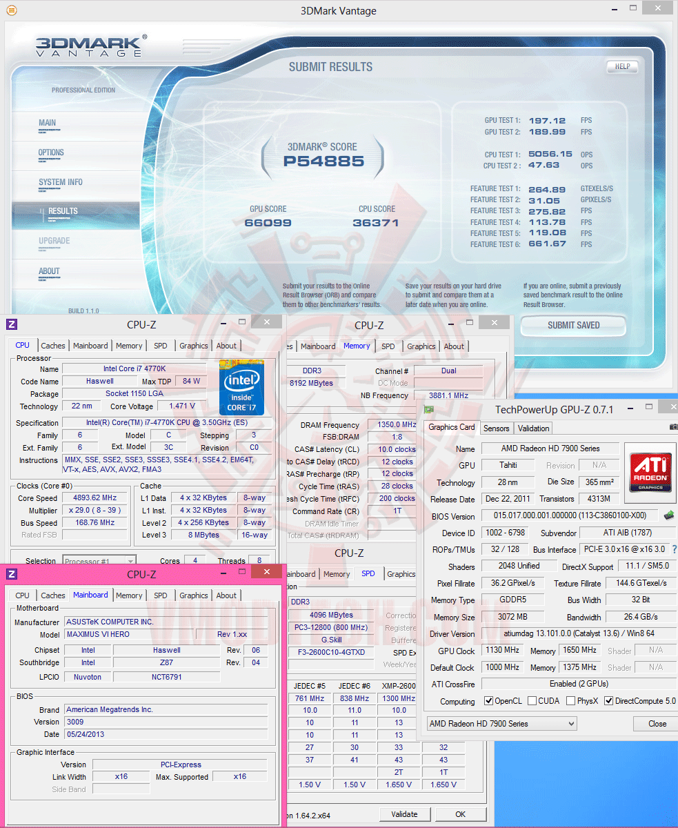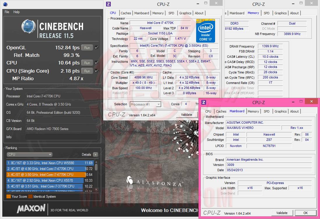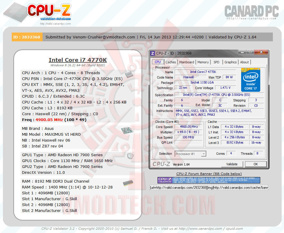 4th Generation Intel® Core™ i7-4770K @ 4,900 MHz Bclk 100 MHz DDR2800 10-12-12-28-1T