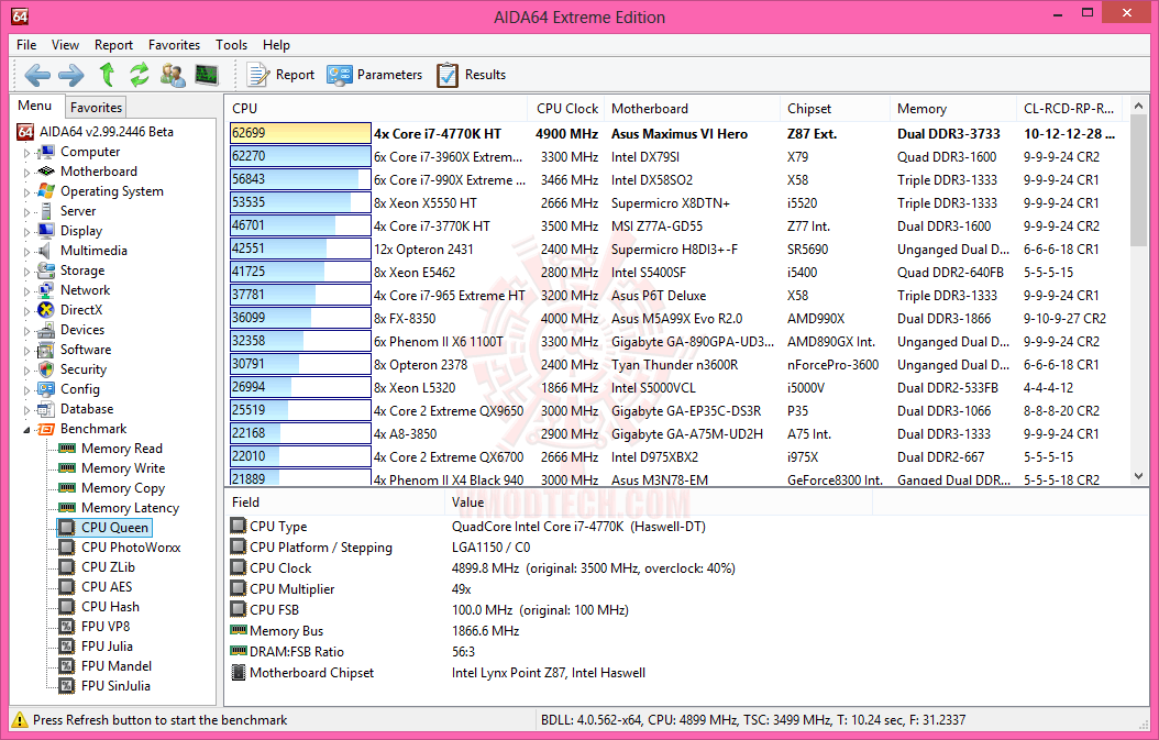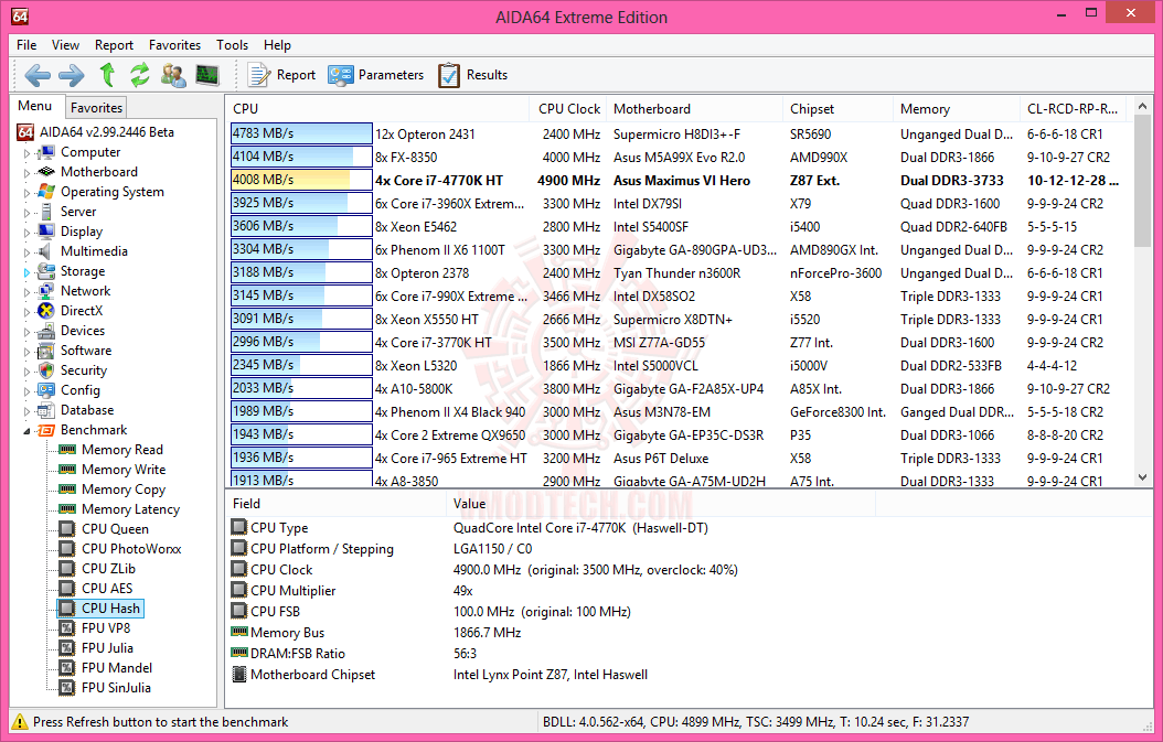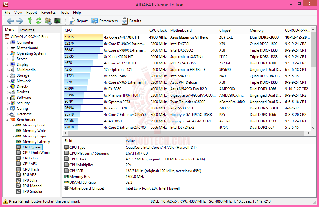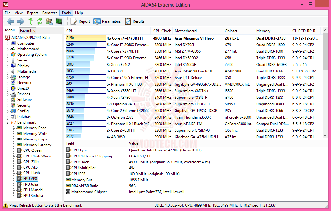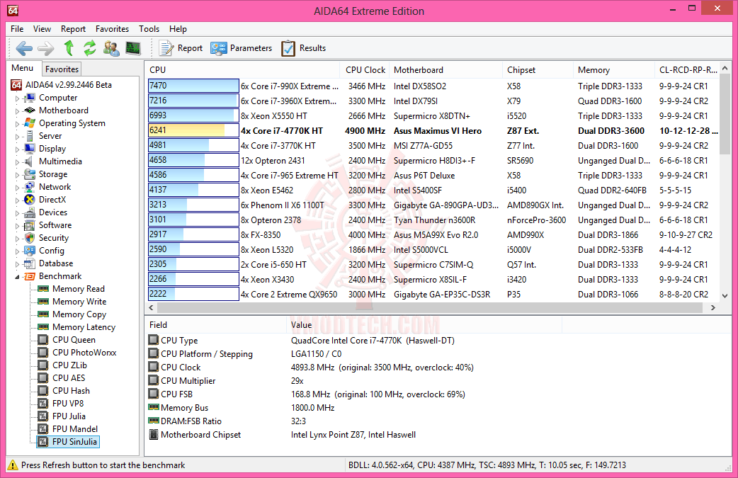 4th Generation Intel® Core™ i7-4770K @ 4,900 MHz Bclk 100 MHz DDR2800 10-12-12-28-1T