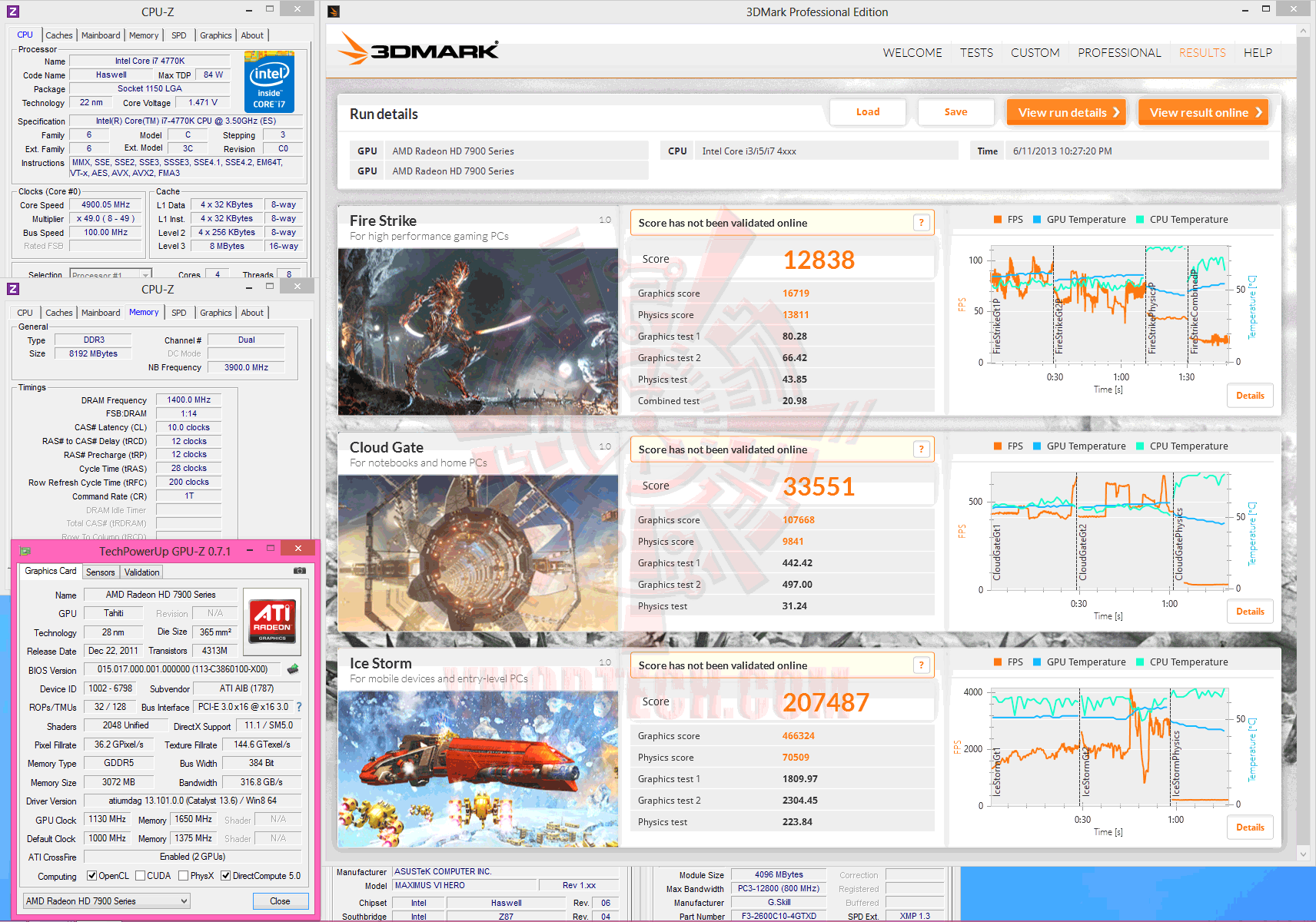 4770K @ 4.9GHz และ 3770K @ 5GHz แรงสูสีกันเลยครับ สำหรับ 3DMark 11