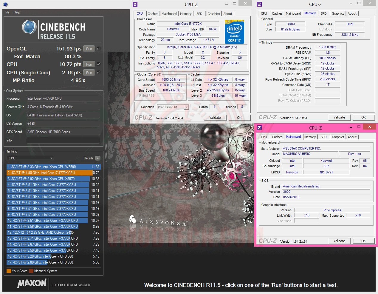 4th Generation Intel® Core™ i7-4770K @ 4,893 MHz Bclk 168.75 MHz DDR2700 10-12-12-28-1T
