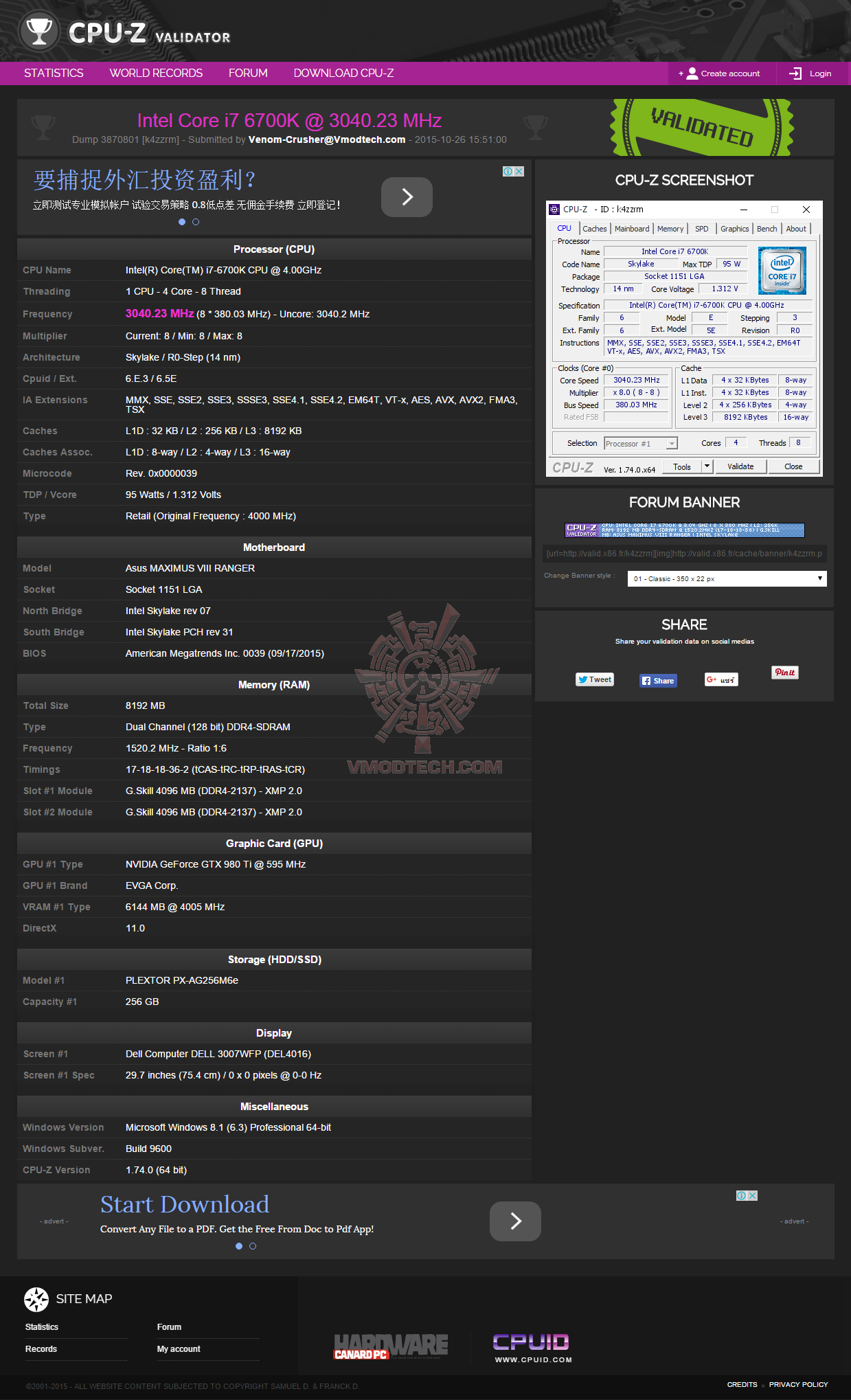 | .Motherboard | ..ASUS ROG MAXIMUS VIII RANGER |