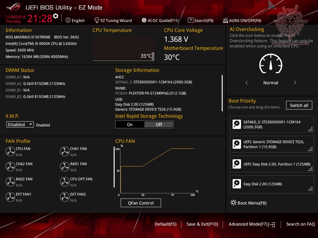 Bios หน้านี้จะเป็นหน้าแรกที่แสดงผลแบบ EZ Mode ซึ่งช่วยให้การปรับแต่งทำได้อย่างง่ายๆ แต่ถ้าต้องการปรับแต่งแบบละเอียดก็เพียงแค่กดปุ่ม F7 เพื่อเข้าสู่ Advanced Mode ด้านล่าง