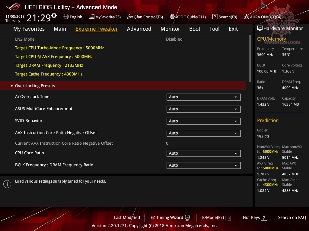 โหมดการปรับแต่งค่าการโอเวอร์คล๊อกต่างๆนั้นก็จะไม่ต่างกับมาเธอร์บอร์ดตระกูล ROG ของ ASUS เลย