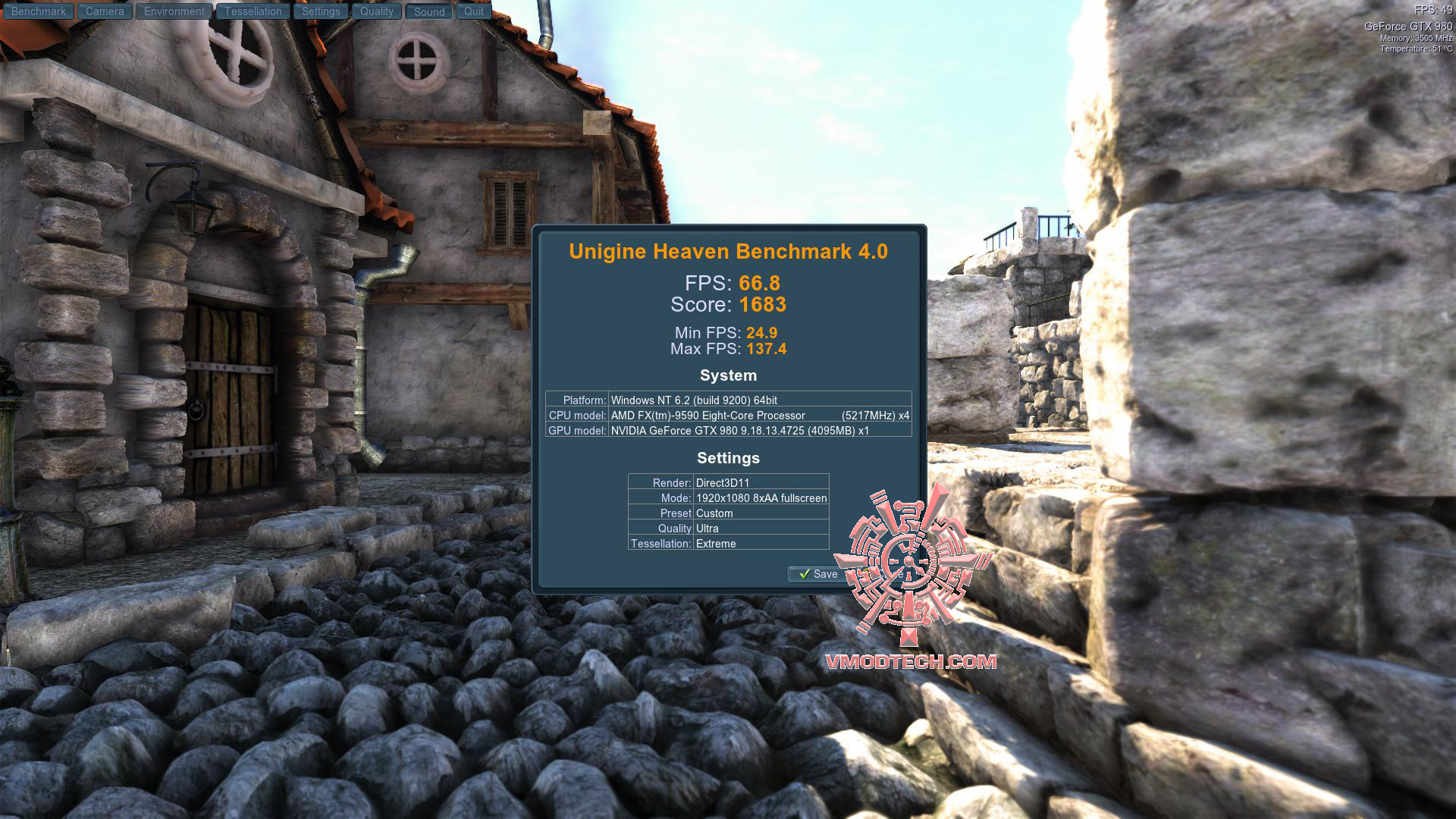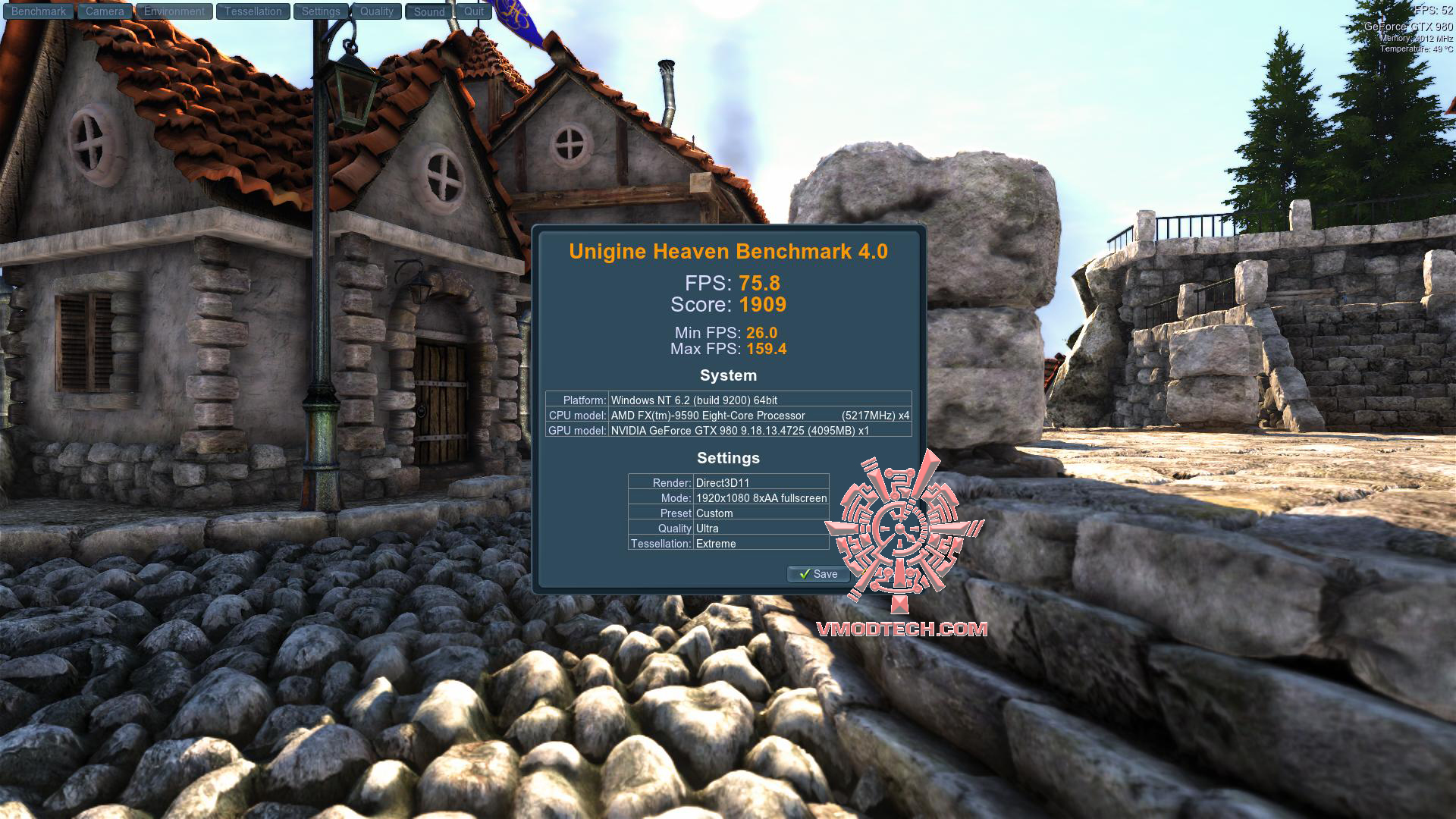 Unigine Heaven 4.0 โอเวอร์คล๊อกแล้วอยู่ที่ 75.8ฟรมเรต แรงโหดจริงๆ