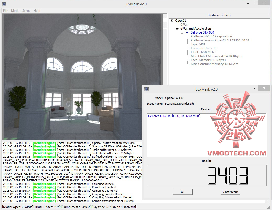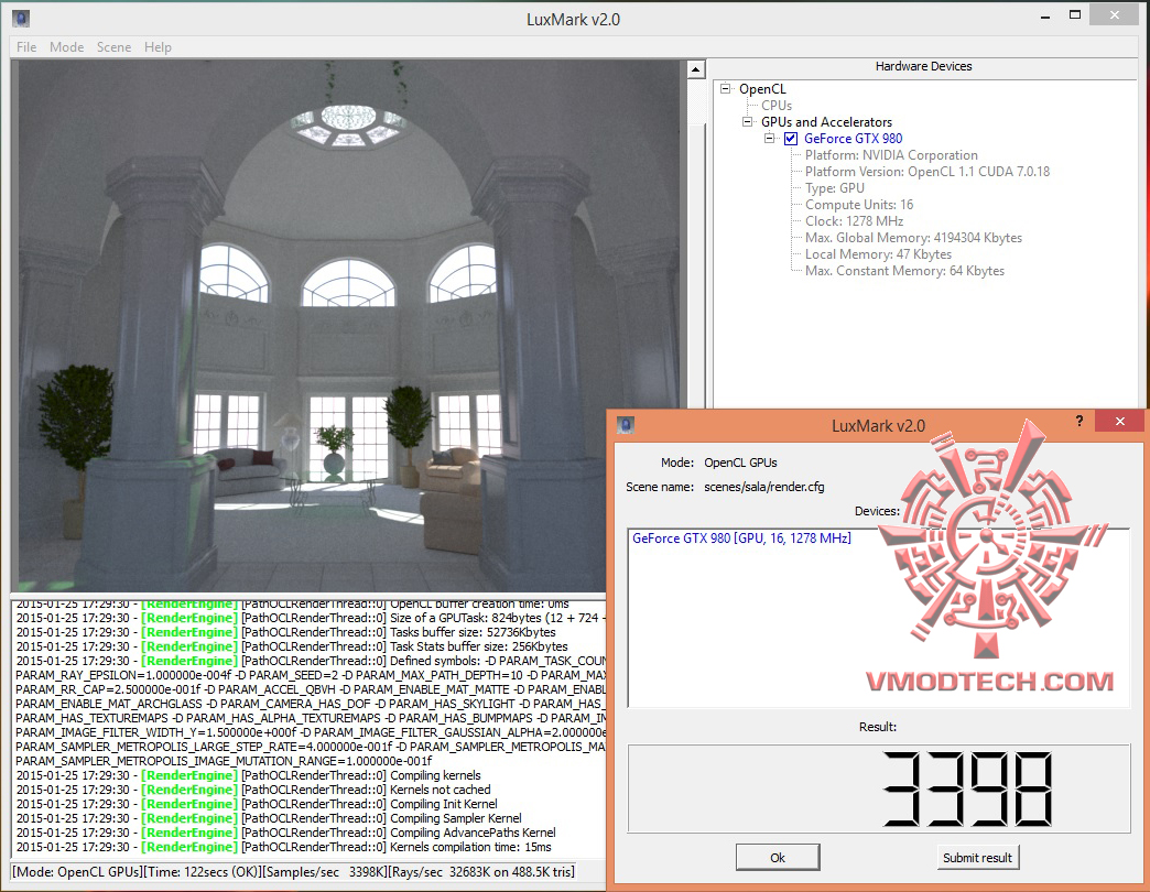LuxMark โปรแกรมเทสด้าน Open CL ก็แรงเลยครับอยู่ที่ 2091ะแนน ดูเป็นแนวทางกันนะครับ การ์ดเขียวไม่ได้เน้น CL เท่าใดนักนะครับ
