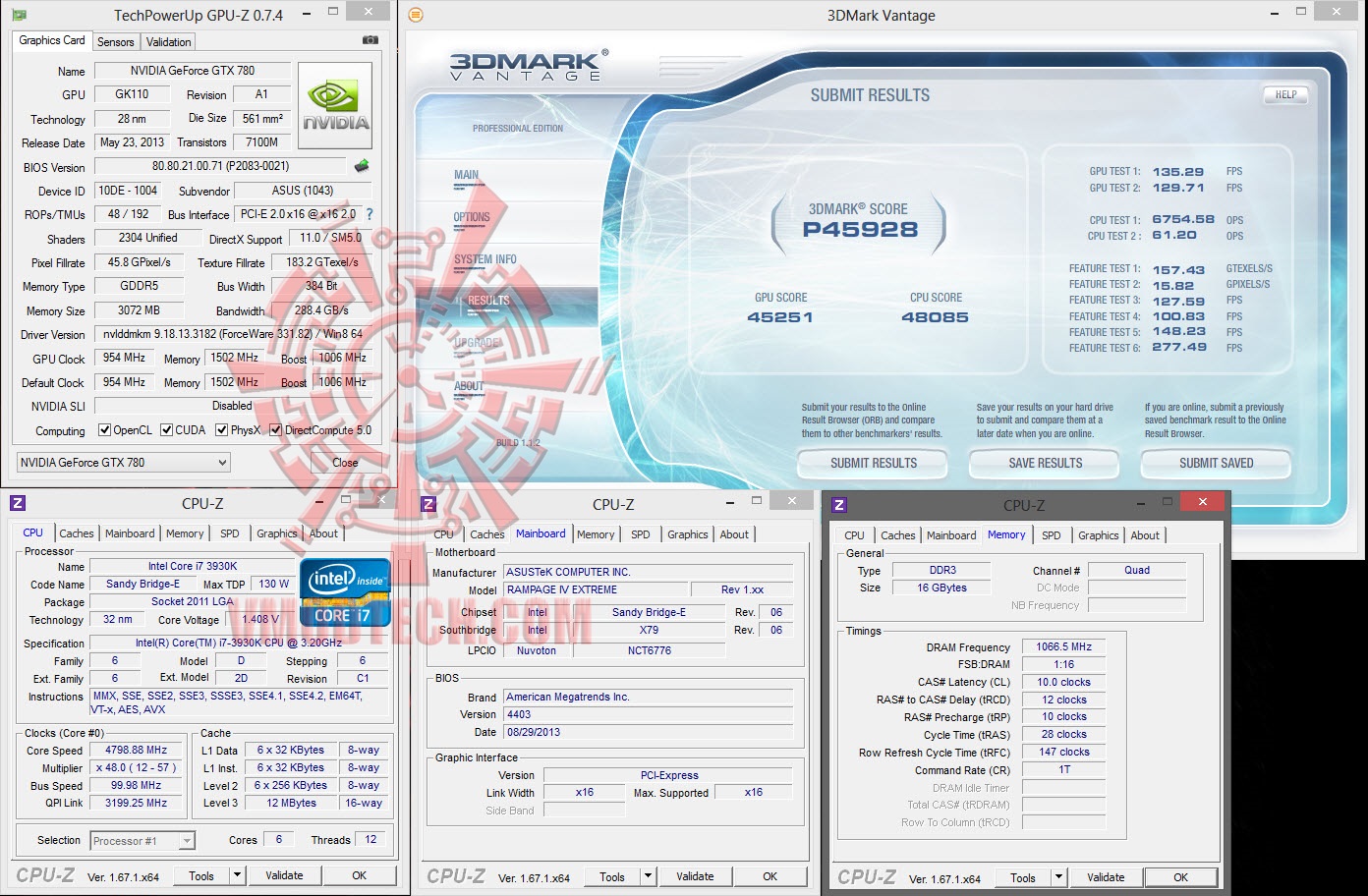ASUS ROG POSEIDON PLATINUM GeForce GTX 780 Default @ 954/1502/1006 MHz Core/Mem/Boost