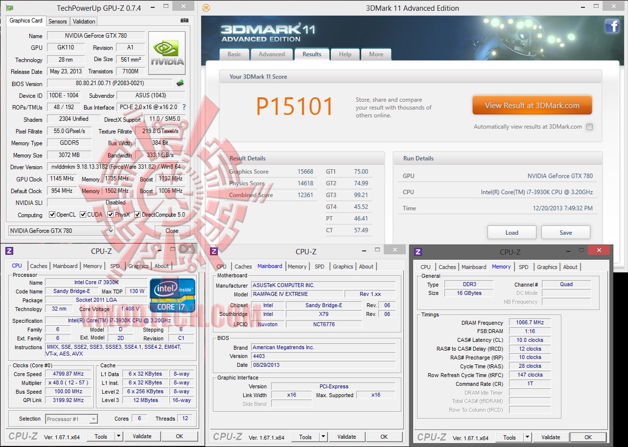 ASUS ROG POSEIDON PLATINUM GeForce GTX 780 Default @ 954/1502/1006 MHz Core/Mem/Boost