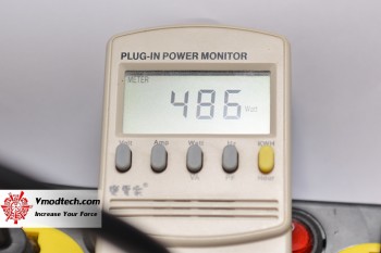 สำหรับ Full Load นั้น กำลังไฟที่กินจากเต้ารับก็สูงสุดที่ค่านี้ครับคือ 486 วัตต์ และในสถานะ Idle นั้นก็กินไฟจากเต้ารับอยู่ 230 วัตต์ครับ ถือว่ากินไฟประมาณนึง