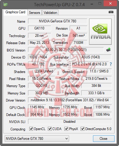 ASUS ROG POSEIDON PLATINUM GeForce GTX 780 Default from GPUZ
