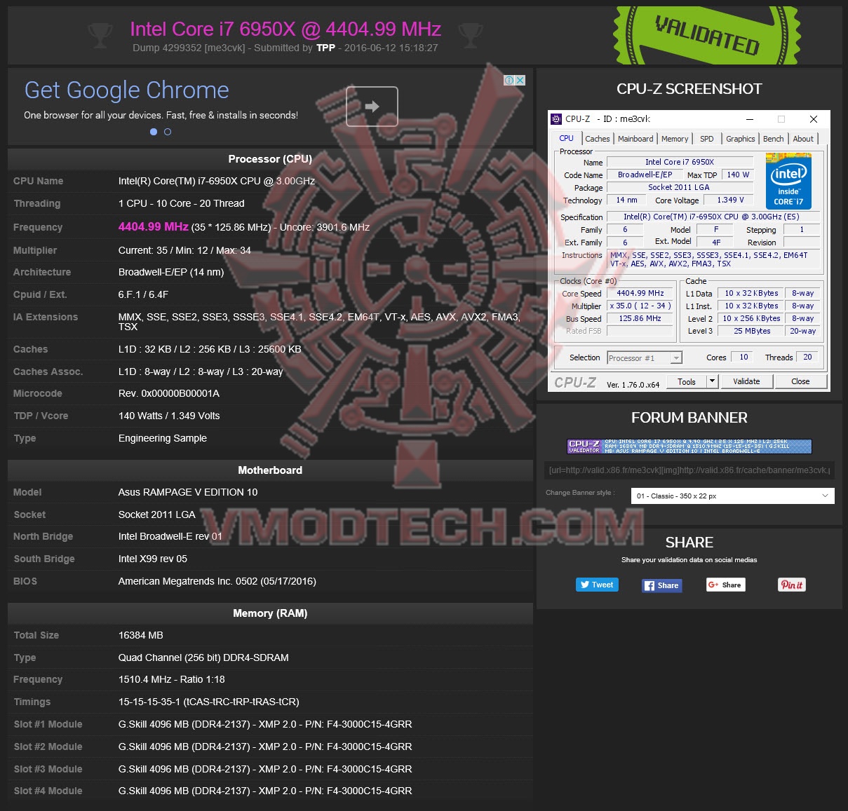 | .Motherboard | ..ASUS ROG RAMPAGE V EDITION 10 |