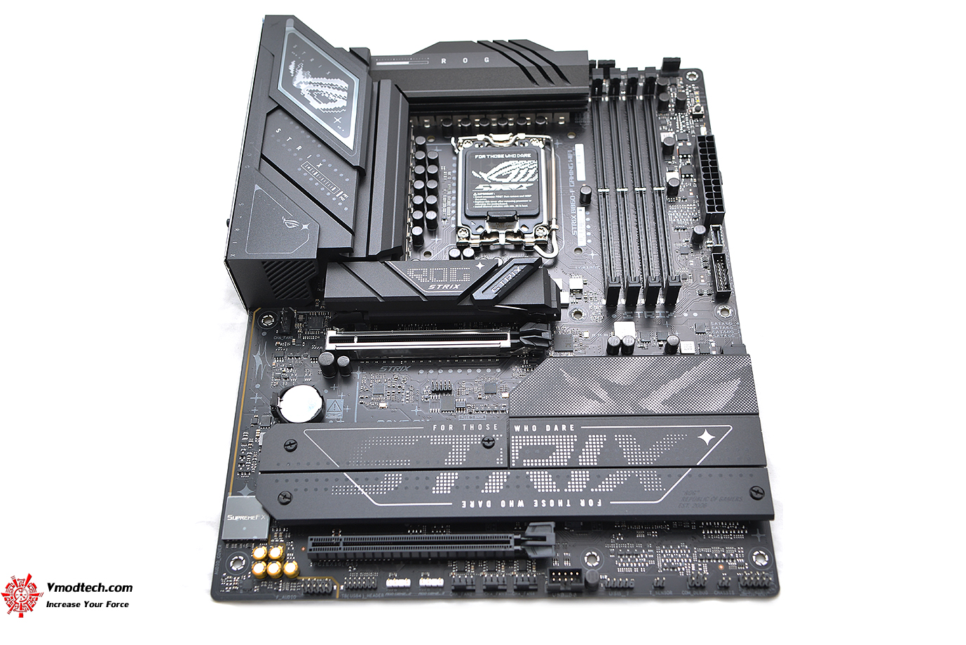 ตัวเมนบอร์ด ASUS ROG STRIX B860-F GAMING WIFI สวยงามตามสไตล์ ROG คงเอกลกัษณ์ลวดลายที่ดูเท่ห์เหมือนเดิม ความแรงจะเป็นอย่างไรน่าสนใจเลยครับ