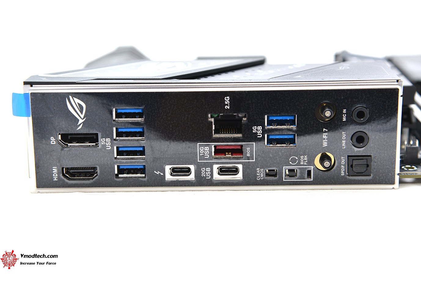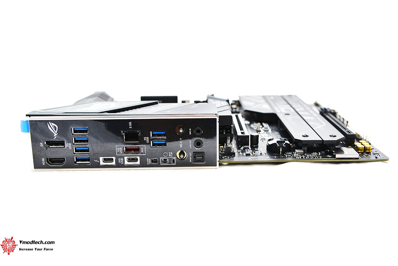 ดีไซน์การจัดวางวัสดุช่องเชื่อมต่อต่างๆ ทำได้อย่างลงตัวสวยงามครับ สาย ROG ก็น่าจะยังชื่นชอบ
