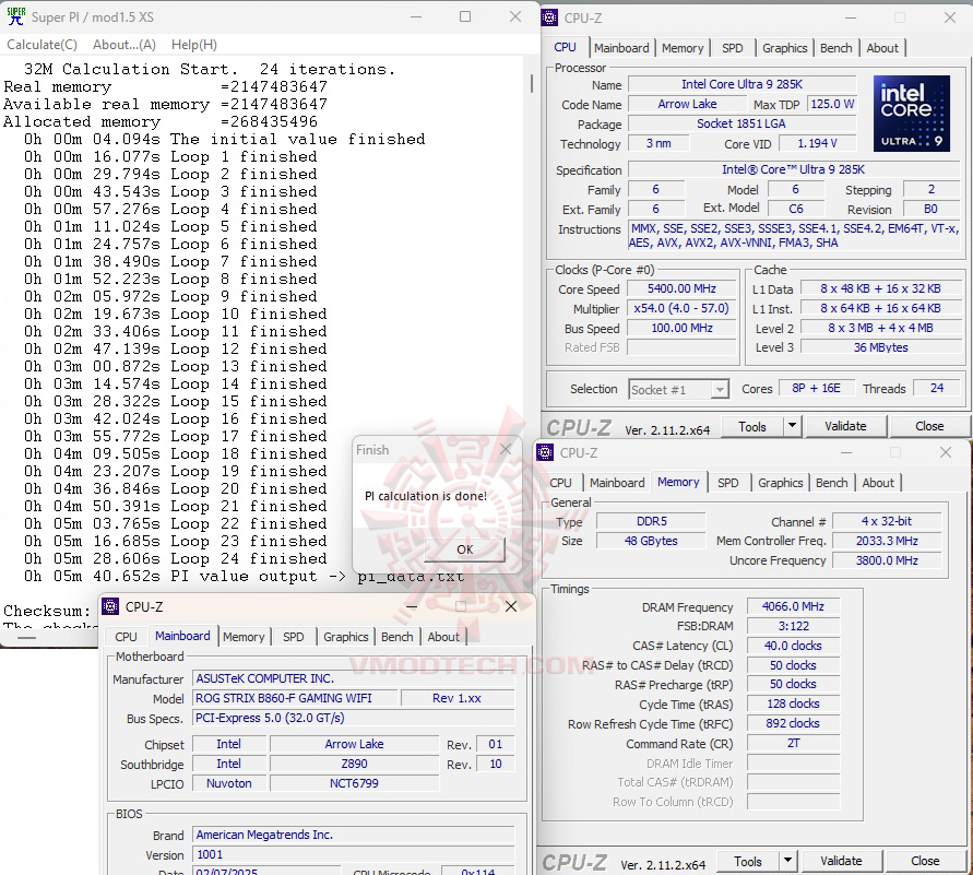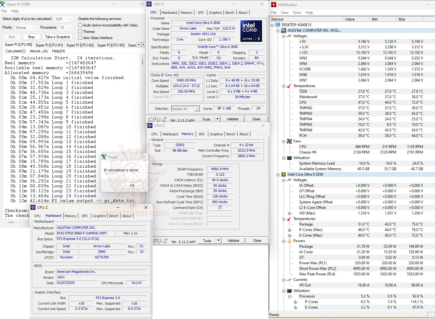 ในการทดสอบนั้นใช้ซีพียู Intel Core Ultra 9 285K รุ่นใหม่ล่าสุด ใช้งานที่ความเร็ว 5.4Ghz 24C/24T ไฟเลี้ยง Vcore 1.2v บัสแรม DDR5 8133Mhz ใช้งานกับเมนบอร์ด ASUS ROG STRIX B860-F GAMING WIFI ใช้งานกันได้แรงเต็มประสิทธิภาพอย่างมีเถียรภาพตลอดการทดสอบเลยครับ