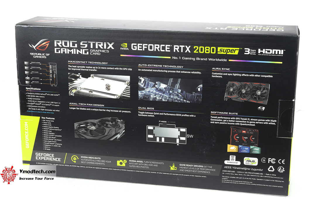กล่องบรรจุ ASUS ROG Strix GeForce RTX 2080 Super นั้นมาในสไตล์ ROG สวยงาม