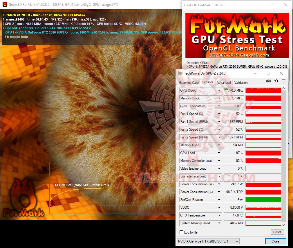 ความร้อนนั้นเพิ่มขึ้นแต่ได้ทำการปรับรอบพัดลมขึ้นเป็น 100% สามารถประคองความร้อนให้อยู่ที่ไม่เกิน 65 องศาได้