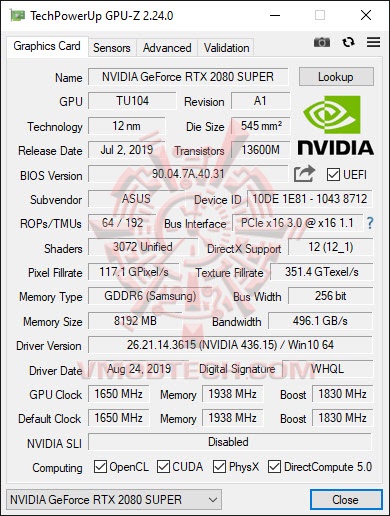 ASUS ROG Strix GeForce RTX 2080 Super from GPUZ