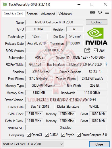 ASUS ROG STRIX RTX 2080 Gaming Overclock from GPUZ