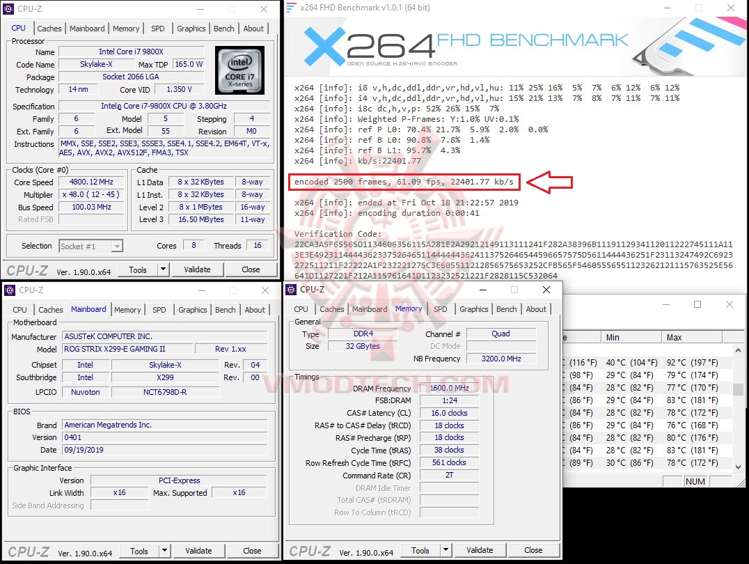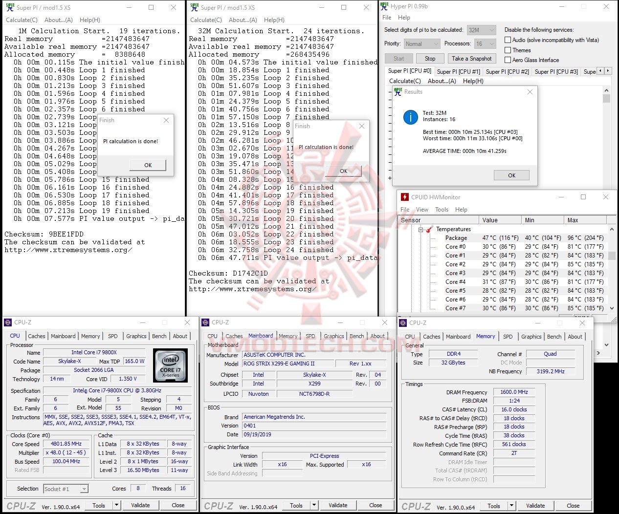 อย่างที่ได้กล่าวไปแล้วว่าวันนี้เรานำเอา CPU Intel Core i7-9800X นั้นเป็น CPU ที่มี 8 คอร์ ทำงานทั้งหมด 16 Thread บนพื้นฐานสถาปัตยกรรมขนาด 14nm โดยวันนี้บนบอร์ดนี้ ผมสามารถปรับแต่งได้ที่ ตัวคูณ 48, BCLK 100 ได้ความเร็วที่ 4.8 GHz ไฟ 1.35 โวลท์