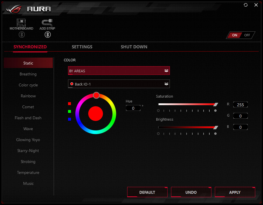 ในตัวโปรแกรมนั้นสามารถสั่งแสงสีบนบอร์ดได้มากถึง 16.8 ล้านเฉดสี ครอบคลุมคัลเลอร์สเปส RGB และยังสามารถปรับเอฟเฟกได้หลากหลายแบบ นอกจากนั้นก็ยังสามารถสั่ง Sync สีบนสายต่อเช่ื่อมให้มีสีสรรและเอฟเฟกสอดคล้องกับบนมาเธอร์บอร์ดได้ด้วย และนี่คือจุดเด่นของตัวมาเธอร์บอร์ด ROG STRIX Z370-E GAMING น่าเสียดายครับที่ในวันที่ทำการทดสอบ ทางเรามีแค่ CPU Core i5 8400 มาร่วมทดสอบเท่านั้น อาจจะยังไม่สามารถรีดเค้นประสิทธิภาพของบอร์ดมาได้หมด แต่ก็เป็นข้อดีเหมือนกันครับที่เราสามารถรู้ได้ว่า CPU เบอร์นี้มันก็เข้ากับบอร์ดได้ดีมาก ตัว CPU แรงเอาเรื่องผนวกกับมาเธอร์บอร์ดที่สวยงาม มันน่าจะเหมาะตาม concept ของบอร์ดเกมส์มิ่งแบบนี้นะครับ คือนักเล่นเกมส์ซื้อไปประกอบเข้ากับเคส จัด CPU เบอร์นี้ ตกแต่งแสงสีให้สวยงามตามที่ต้องการ โอ้ว สวรรค์สำหรับนักเล่นเกมส์เลย น่าสนใจจริงๆครับ