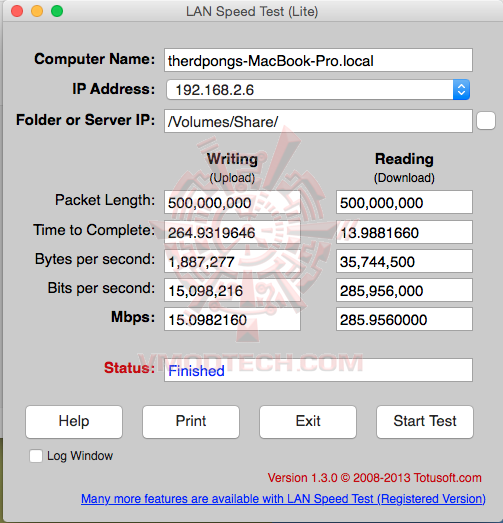 * การทดสอบนั้นแบ่งเป็นสามขั้นตอนนะครับ คือใช้ LAN Speed Test เชื่อมต่อกับเซอร์ที่ SSD Drive