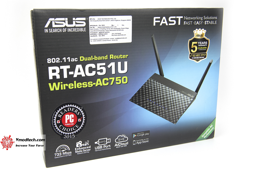 กล่องบรรจุ ASUS RT-AC51U นั้นมีน้ำหนักเบาขนาดพอประมาณครับ หน้าและหลังกล่องนั้นก็มีการอธิบายคุณสมบัติหลักเอาไว้ให้พิจารณาอย่างชัดเจนเลย