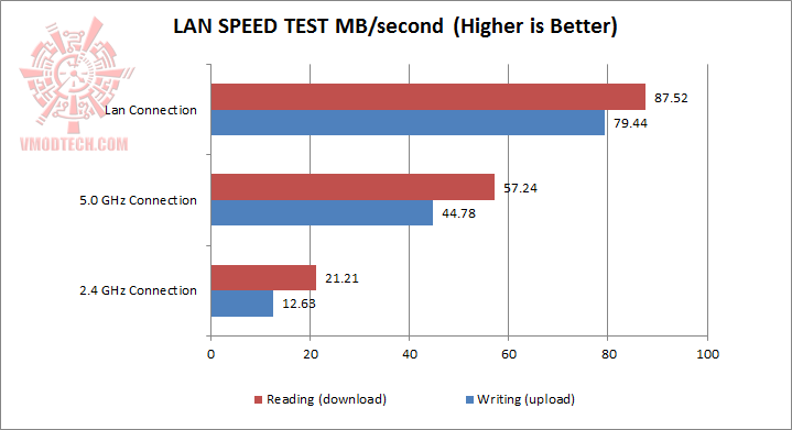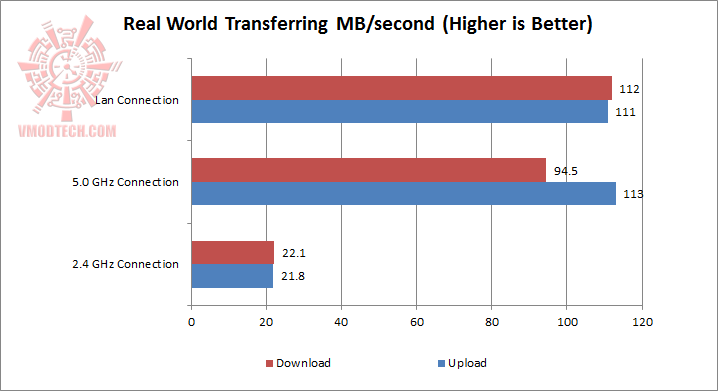 หลังจากลองมาตรวจสอบความเร็วในการรับส่งข้อมูลแบบใช้งานจริงนี้ จะเห็นได้ว่าการเชื่อมต่อแบบ Wireless 5.0 GHz นั้นทำผลงานได้ยอดเยี่ยม เกือบจะเทียบเท่ากันกับการเชื่อมต่อแบบ Gigabit Lan แล้วครับ