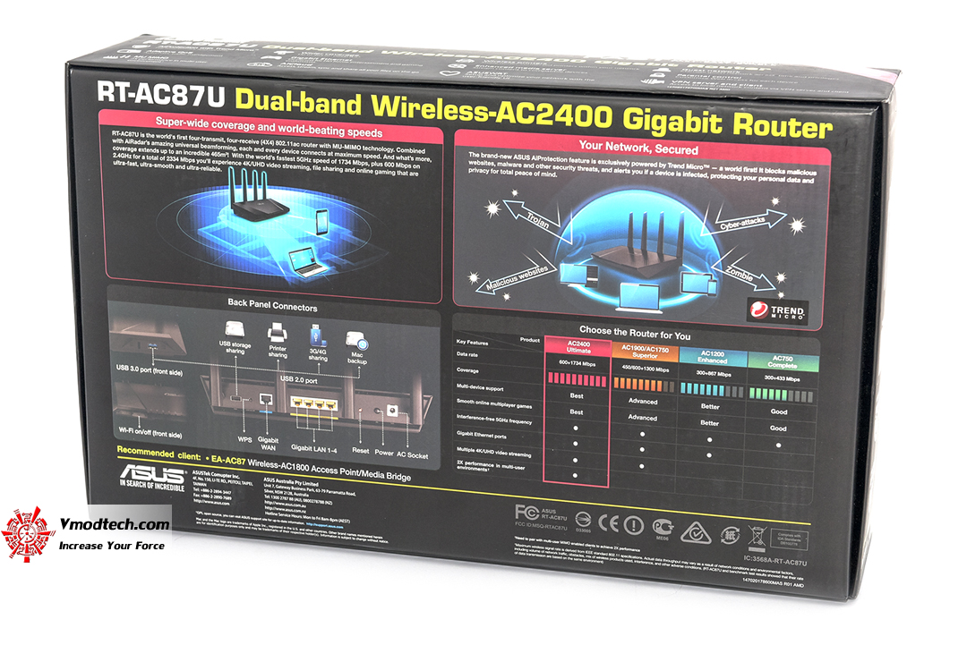 สำหรับ ASUS RT-AC87U นั้นมันเป็น Wireless Router AC2400 รุ่นใหม่ล่าสุดจาก ASUS ที่สามารถกระจายสัญญาณ Wifi ได้ในแบบ AC ความถี่รวม 2334 Mbps (Mega-bit-per-second) ทั้งย่าน 2.4 และ 5.0 GHz รองรับการทำงานตามมาตรฐาน 802.11ac ส่วน ASUS PCE-AC68 นั้นเป็น Adapter ชนิด PCI-E แบบ AC1900 ที่รองรับมาตรฐาน 802.11ac เช่นกัน โดยมันสามารถgเชื่อมต่อสัญญาณได้ที่ความถี่ 1300 Mbps (Mega-bit-per-second) ทั้งย่าน 2.4/5.0 GHz เช่นเดียวกันครับ เรามาชมรายละเอียดกันต่อจากหน้าเว็บของ ASUS กันก่อน