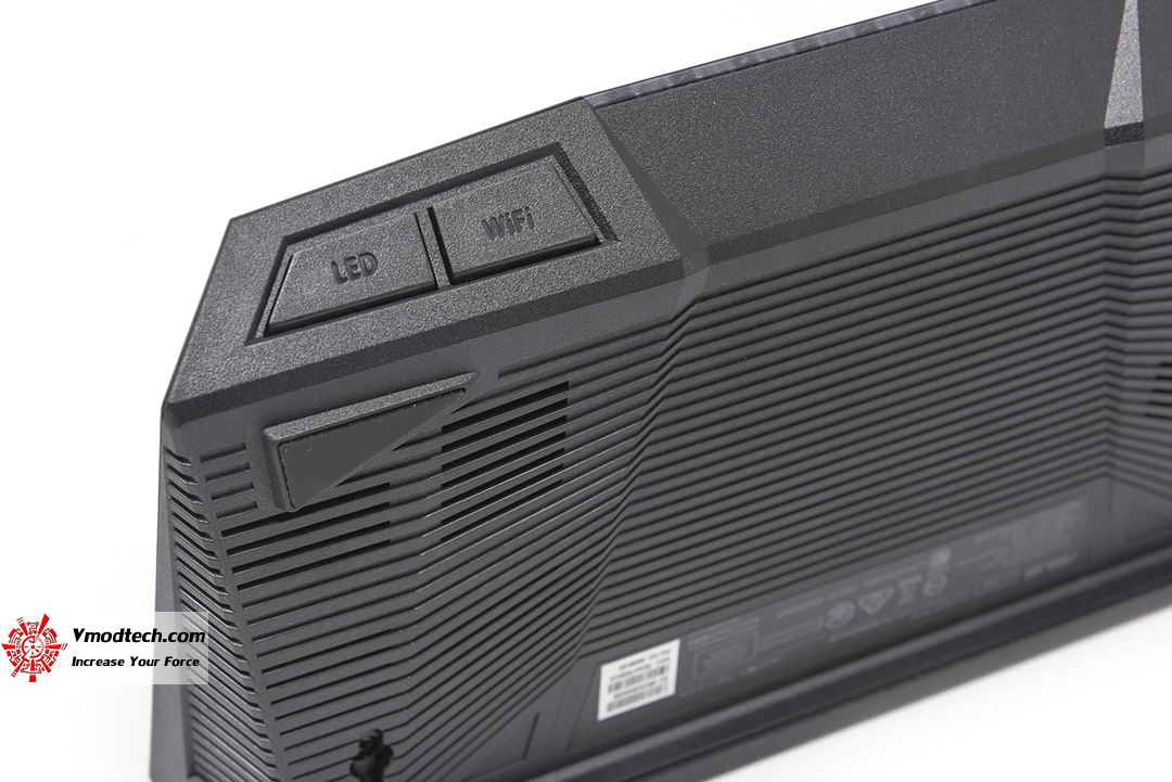 หงายด้านล่างของ AC87U ก็จะเห็นการออกแบบให้ตัวถังนั้นถูกยกขึ้นช่วยระบายความร้อน