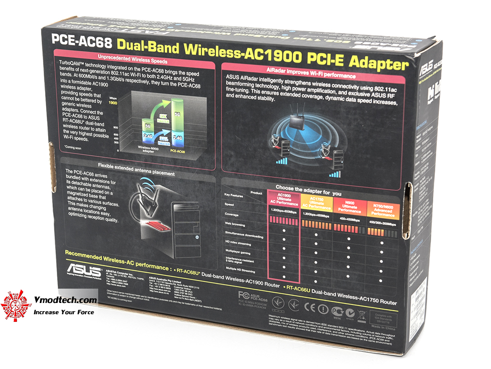 มาดูด้าน ASUS PCE-AC68 กันบ้าง กล่องก็มาโทนเดียวกันเลยครับ ด้านหน้ากล่องก็จะอธิบายคุณสมบัติหลักเอาไว้